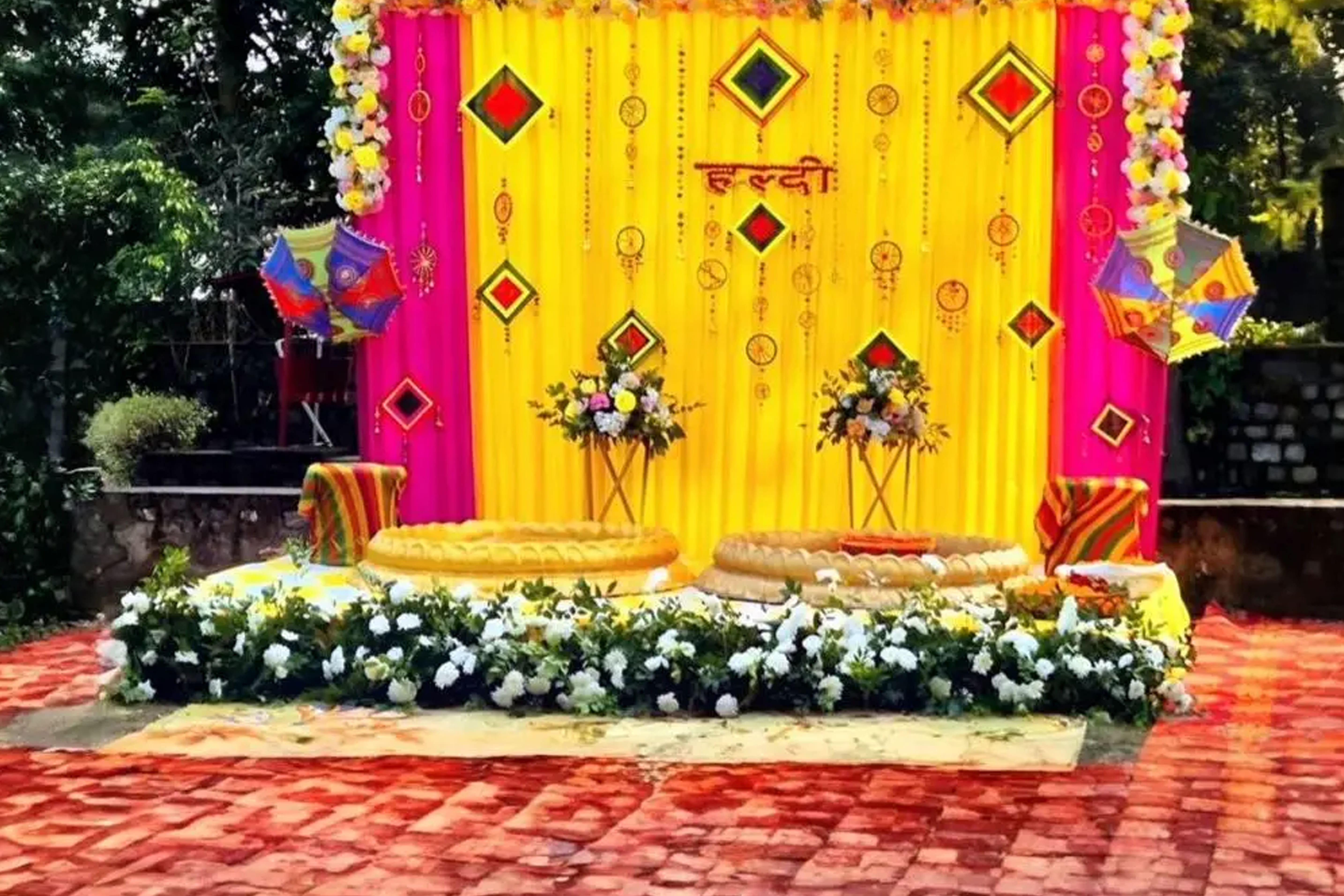 We create vibrant and traditional Haldi setups with yellow themes, marigold flowers, floral backdrops, decorative seating, and customized stage arrangements to make your ceremony joyful and picture-perfect.
