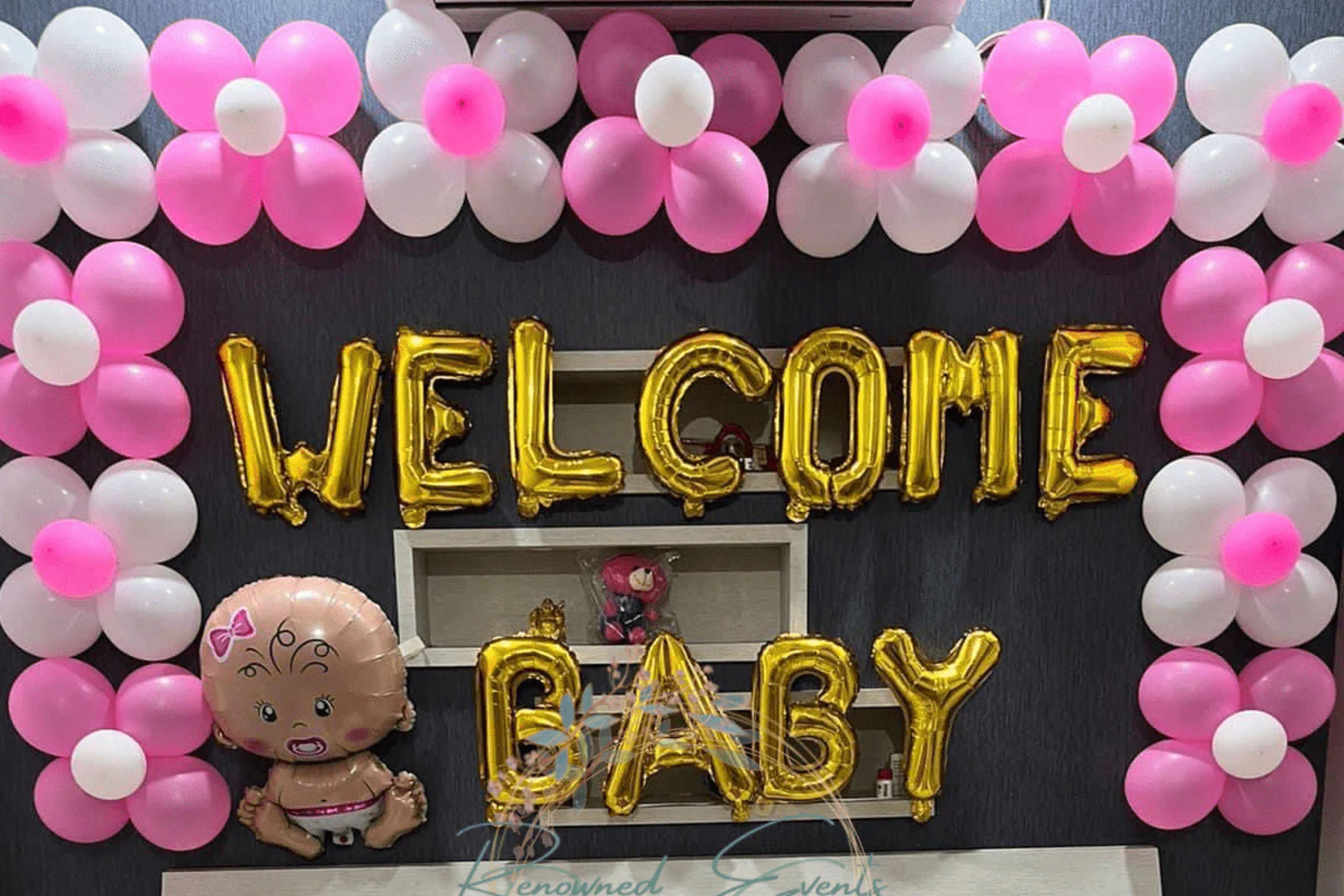 Celebrate the arrival of your little one with cute and heartwarming baby-themed decorations, pastel balloon designs, name boards, and cozy home décor arrangements.